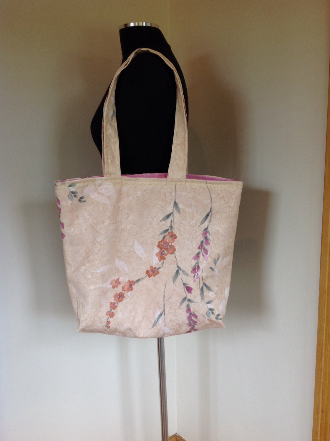 Asian floral inspired handmade tote diaper bag carry all purse