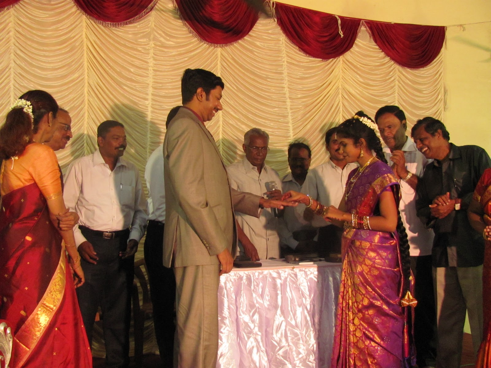 The prospective bridegroom and bride exchanging rings